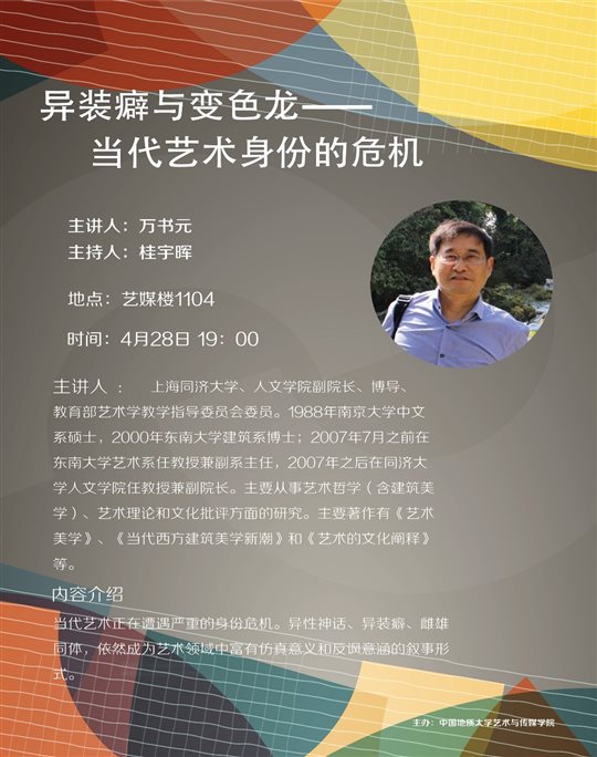 (通讯员:陈康 拍摄:毕鸿辉)2017年4月28日晚19点,教育部艺术学教学指导委员会组员,同济大学人文公司副经理万书元教授做客3044永利集团1301室,作了题为《异装癖与变色龙——当代艺术身份的危机》的专题讲座。桂宇晖经理主持了此次讲座,武汉大学杨雪松教授、武汉理工大学雷鑫博士等参加了此次讲座。