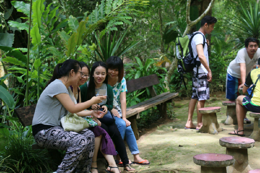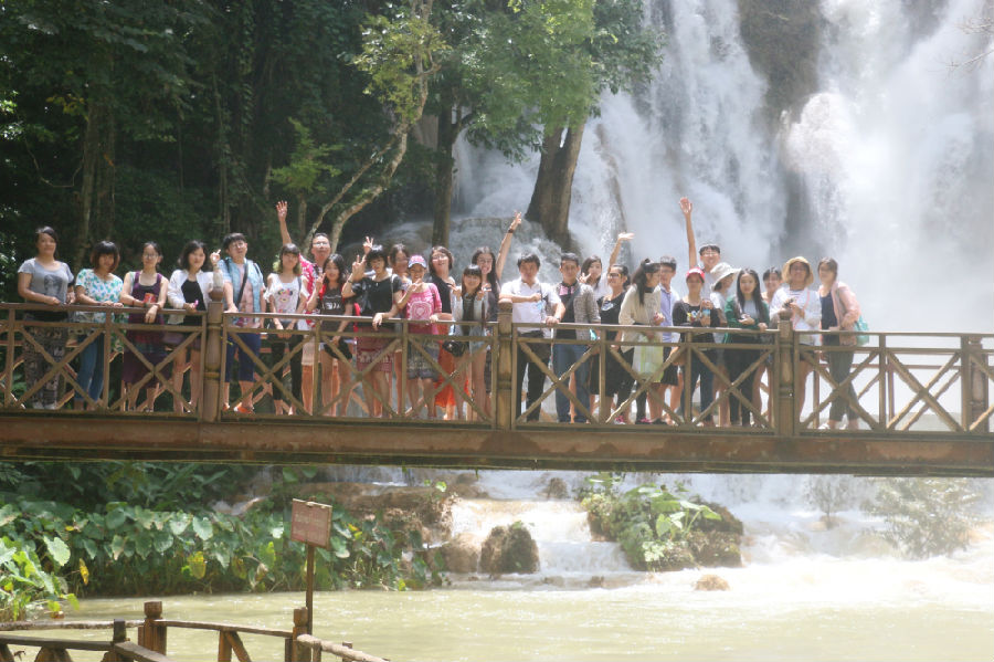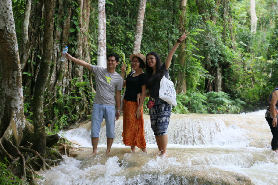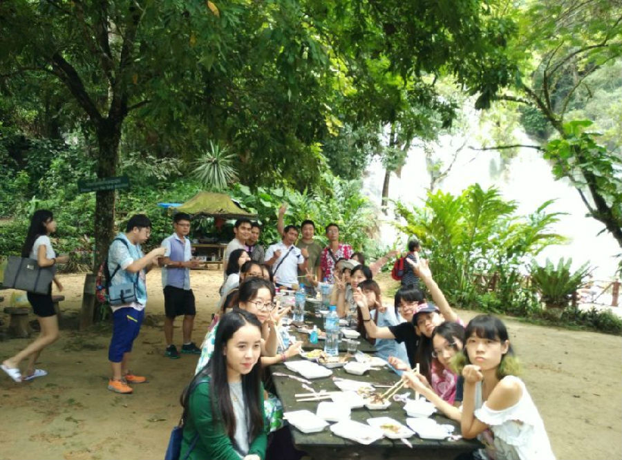 9月10日,苏发努冯大学建筑公司师生邀请老挝写生组一同参观琅勃拉邦自然景观关西瀑布。光西瀑布景色瑰丽,沿山路上行,时而涉水而行,沿途交流。午间,苏发努冯大学建筑公司师生与琅勃拉邦写生小组在瀑布前共进老挝传统午餐,回途中,苏发努冯大学建筑公司老师向我们介绍了当地传统的傣族民居。