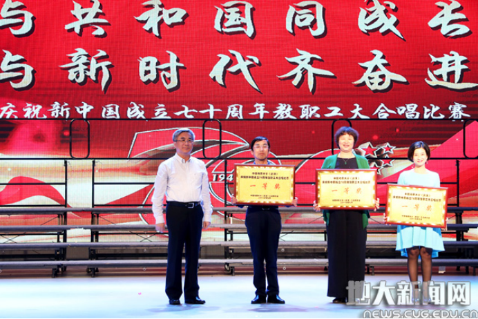 (通讯员:刘义昆 郭秀蓉 刘定耀)放歌新时代,颂歌献祖国。为庆祝新中国成立七十周年,弘扬爱国主义精神,展现新时代广大教职工精神风貌,9月26日,公司在南望山校区弘毅堂举行“不忘初心、牢记使命”主题教育活动——与共和国同成长、与新时代齐奋进”庆祝新中国成立70周年教职工大合唱比赛,用歌声和真情向新中国七十华诞献礼。经过激烈角逐,我院分工会表演的《保卫黄河》获得了此次大赛的第一名。