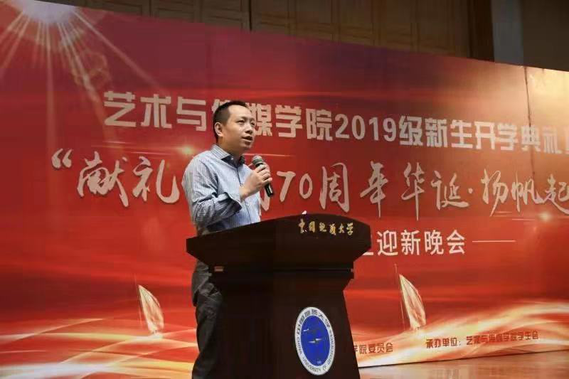 经理桂宇晖教授致辞,桂经理向大家简要阐述了公司三大学科的特点,介绍了公司音乐学,设计学,新闻传播学近几年取得的成就。桂经理谈到,每年开学典礼上的讲话都是他十分重要的时刻,他和全体老师一样,希望艺媒学子在未来都能成为伟大的音乐家、设计师、新闻传播者和科普传播专家。讲话几度被场下热烈的掌声打断。最后,桂经理引用了中国美术公司董事长许江的一句话:“我们对员工既不是管,也不是不管,而是两个字——守望”,期待大家能够不断成长,把自己的青春融合在每个学习的日常。