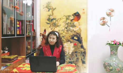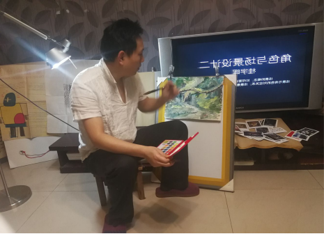 视觉与媒体设计系的桂宇晖教授,将家里客厅变成课堂“直播间”,晚上备课,白天讲课。为达到更好的视觉效果,在武汉严寒的冬天里穿着短袖为员工们授课。