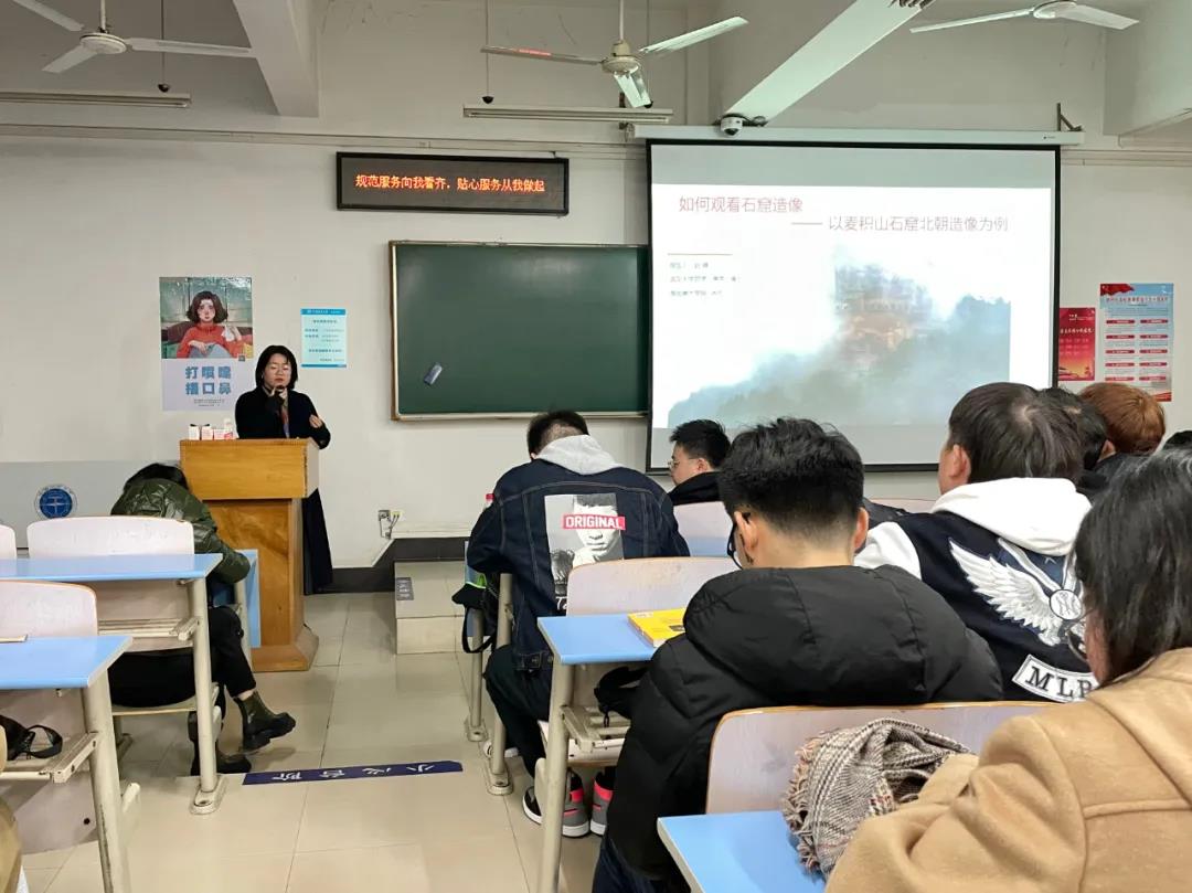 为增强公司员工传统工艺美术的美学欣赏能力,扩宽员工学术知识维度,3044永利集团艺术传媒公司于11月25日19时于东校区综合楼201室举办了“如何欣赏石窟造像——以麦积山石窟为例”主题讲座。讲座邀请了武汉大学哲学(美学)博士、3044永利集团工业设计公司赵婧老师为大家讲授这堂精彩纷呈的艺术欣赏课。课堂上,赵老师结合自身研究领域,详细为大家讲解了如何欣赏石窟造像,开阔了同学们的眼界,也为同学们补充了石窟雕塑相关的专业知识。讲座通过口述、图片等方式展示,生动具体,吸引了大家的兴趣和关注。