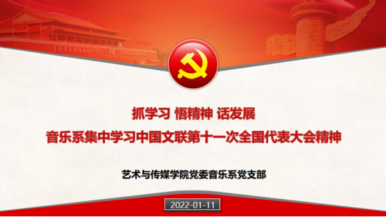 为深入学习贯彻习近平总书记在中国文学艺术界联合会第十一次全国代表大会、中国作家协会第十次全国代表大会开幕式上的重要讲话精神,推动音乐系工作不断迈上新台阶,1月11日上午,音乐系组织全系教师,集中学习传达习近平总书记的重要讲话精神。