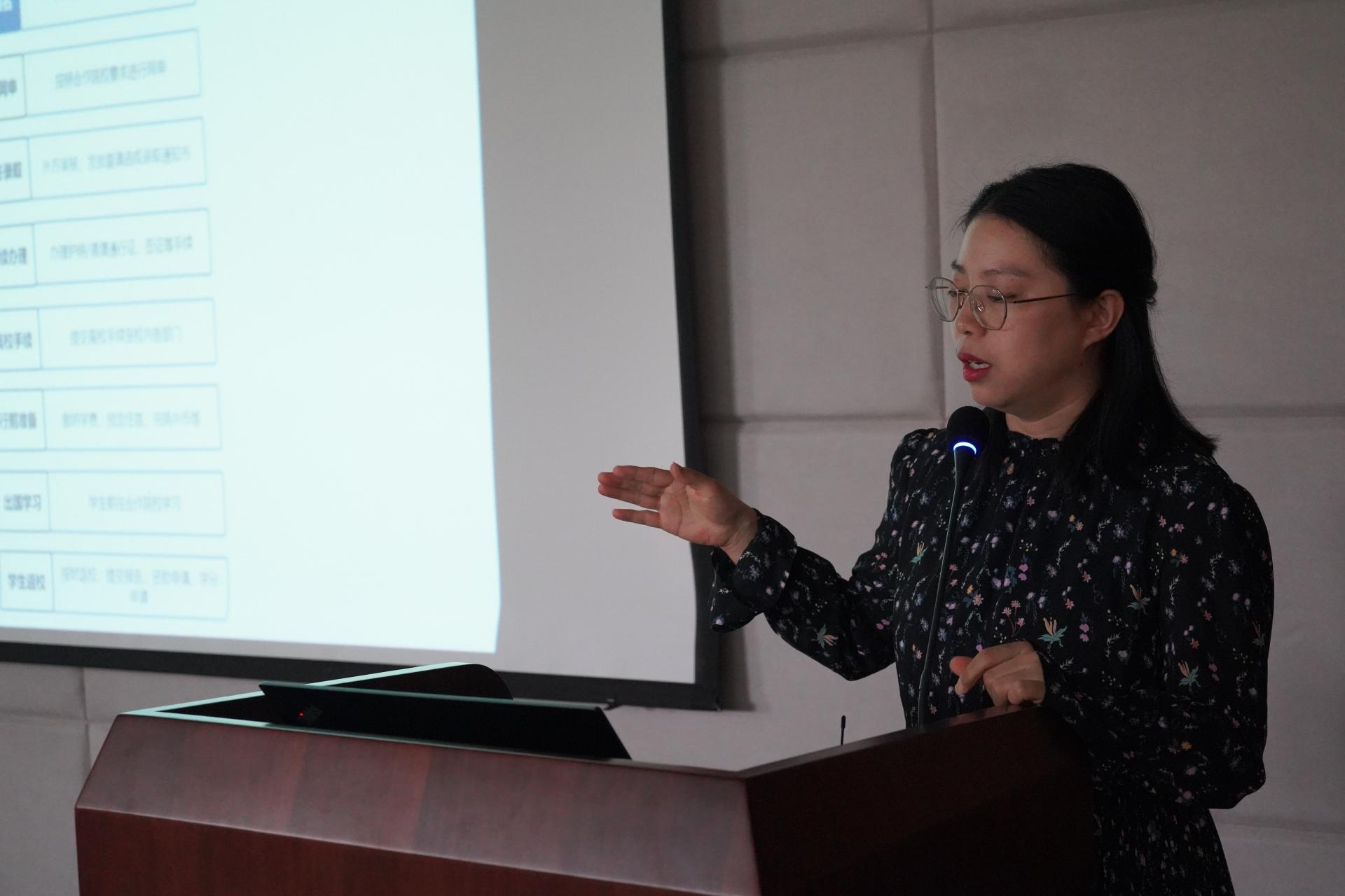 宣讲会上,赵安琪老师介绍了公司国际教育公司的基本情况,海外/境外交流学习项目,分享相关案例,还就员工如何利用好国际交流学习机会提出了建议。接下来,李雅莉老师具体介绍了国际交流项目的申请流程、注意事项,精彩案例分享等,李老师指出参与国际交流不仅仅能提升学业成绩,也能助力员工开阔眼界,做好人生规划。