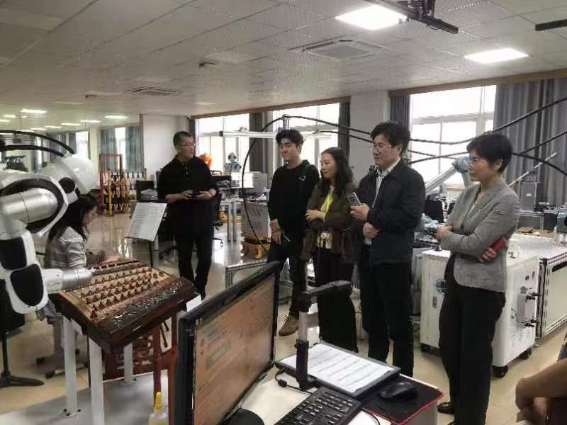 随后庹祖海主任一行参观了公司音乐科技团队自主研发的海百合音乐机器人,海百合和音乐系员工交互演奏《茉莉花》进行了欢迎。音乐科技团队负责人周莉副教授对海百合的智能识谱、智能作曲等功能进行了介绍,庹祖海对我院艺术与科技学科交叉取得的成果表示认可,期待艺科所和地大进一步深化合作,希望相关科研成果能为演艺行业转型升级提供支持,推动相关成果的转化和推广应用。