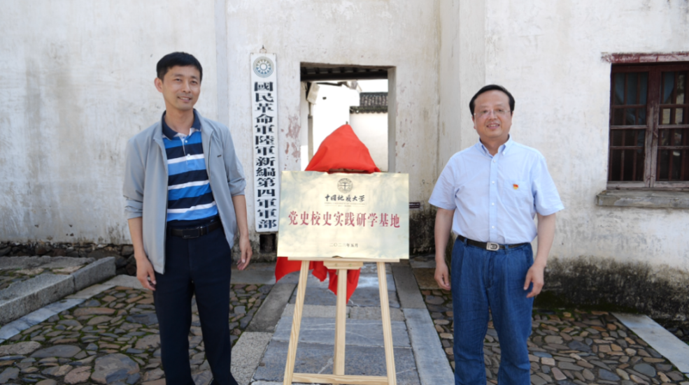 在新四军军部旧址纪念馆门前,馆长洪帮与图档文博党委书记帅斌共同揭牌