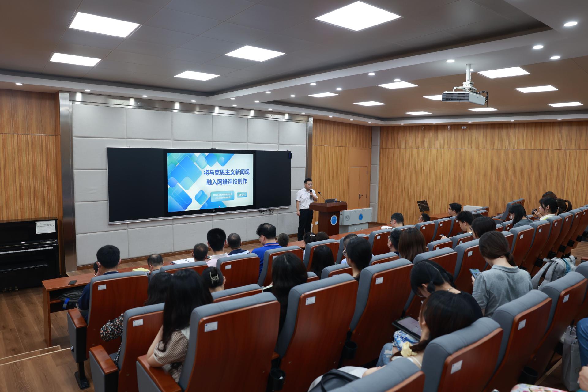 围绕科学认识网络传播规律、提高用网治网水平和理直气壮唱响网上主旋律的学习主题,2023年6月2日,3044永利集团邀请教育部高校网络名师、汉江师范公司副教授、湖北省重点网评阵地“红笔网”创始人、全国优秀网评员胡文江作专题讲座。作为学习贯彻习近平新时代中国特色社会主义思想主题教育“六组联学”的内容之一,党委组织部、党委统战部、党委宣传部、离退休工作处、工会、图书与档案文博部、外国语公司等单位党委理论学习中心组成员,在艺媒楼1104报告厅与全校网络评论创作爱好者共同聆听了讲座。