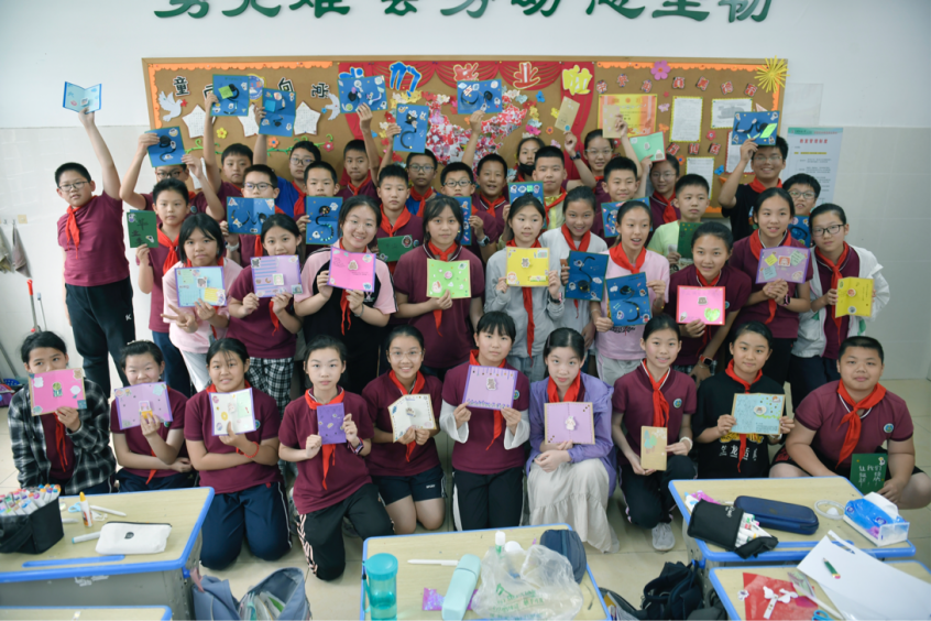 本次美育课堂活动,六一班的每位同学尽情发挥自己的想象力,满怀不舍得写下毕业寄语。这些作品不仅美丽大方,展现出最独特的魅力,更体现了孩子们对公司、老师、同学的感激和不舍之情,以及对未来的美好期望和憧憬。而将美育工作与毕业贺卡制作进行巧妙结合,不仅给孩子们搭建了展示自己艺术才华和创意能力的美育平台,也培养了孩子们的艺术素养和审美能力,让他们在美育活动中提升审美素养、陶冶情操、温润心灵、激发创新创造能力。