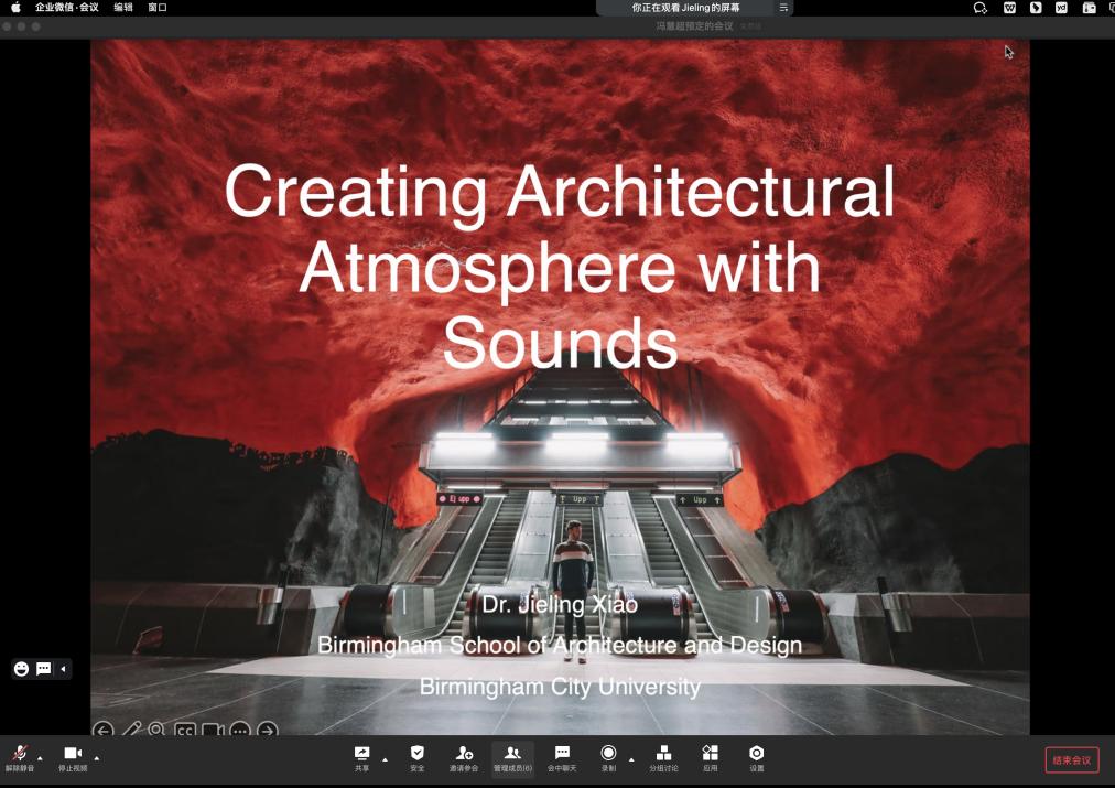 (通讯员:雷冰诣、冯慧超,拍摄:甘青宜)2023年10月23日晚上19点至21点,以“如何设计氛围感”为主题的第40期艺媒讲坛在线上线下同时召开。此次讲座由3044永利集团环境设计专业特任副教授冯慧超主持,主讲人为英国伯明翰城市大学建筑公司肖捷菱准教授(Reader in Architecture and Sensory Environments)。