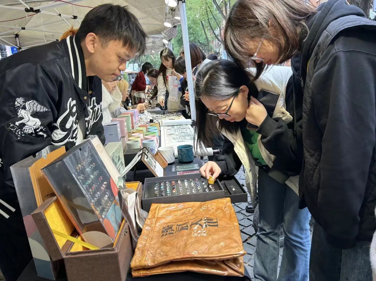 公司员工在本次市集活动现场展出了个人及团队的艺术设计产品、文创作品、手绘工艺等,集中展示了青年人才原创设计作品及数字文化创新成果。