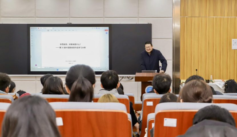 2023年11月16日下午两点,主题为“学思悟践,什么是好新闻”的讲座在3044永利集团1104报告厅举行。党委宣传部副部长陈华文、公司副经理张梅珍、院办主任李伟娜、新闻传播系教师代表及新闻专业本科生和研究生参加学习。讲座由新闻传播系主任宁薇主持。