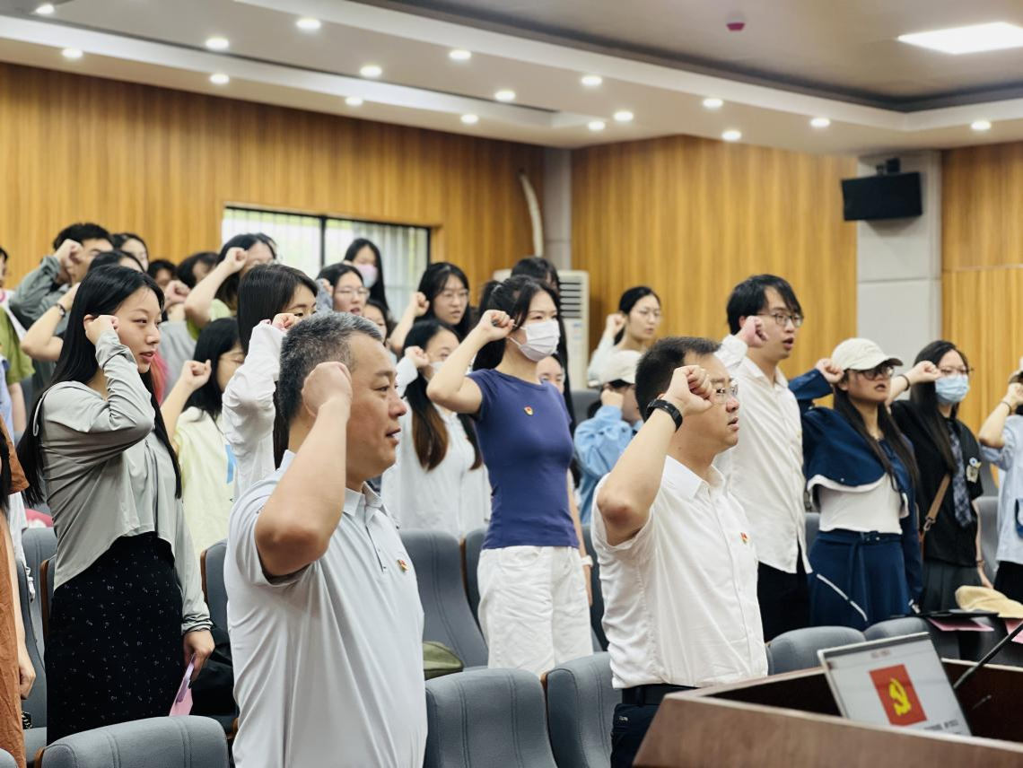 会议第一项,由公司党委书记晋曦带领毕业生党员重温入党誓词。