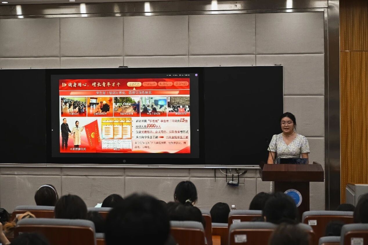 互动交流环节,员工会的同学们向各位大一新生分发小礼品等,现场氛围十分活跃。