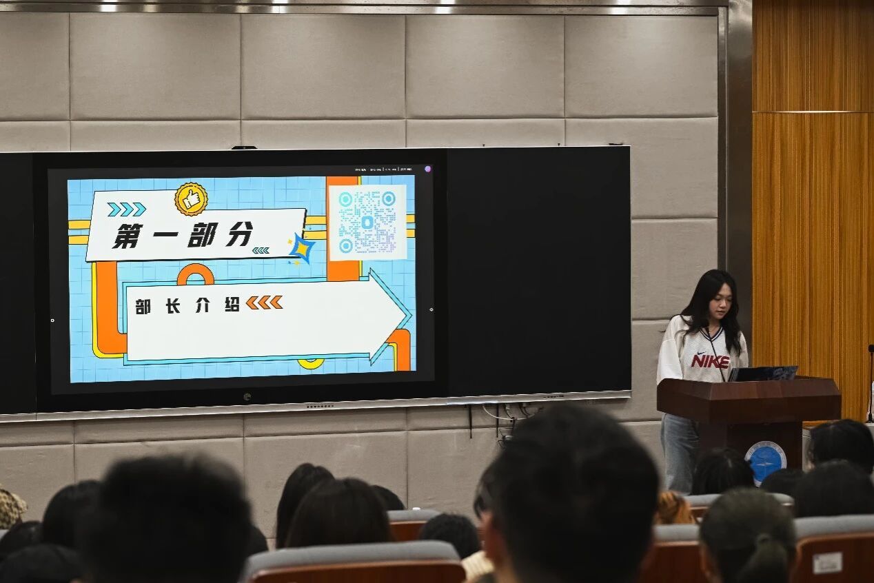 紧接着由员工会和分团委下属的各部门进行宣讲,部长们分别从人员介绍、部门概况和优势、工作属性及内容等方面进行讲解。