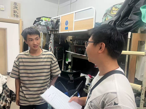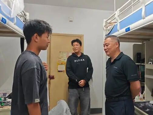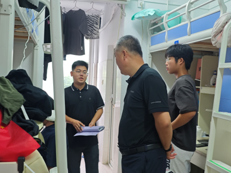 在走访员工宿舍的过程中,边建华书记与各位辅导员老师向同学们送上了节日问候,并对各寝室的用电用水安全进行了细致排查。老师们关切询问了同学们的假期安排,叮嘱离校同学注意旅途中的财产与交通安全,提醒留校同学规律作息、安全用电,共同营造团结友爱、健康和谐的宿舍氛围。