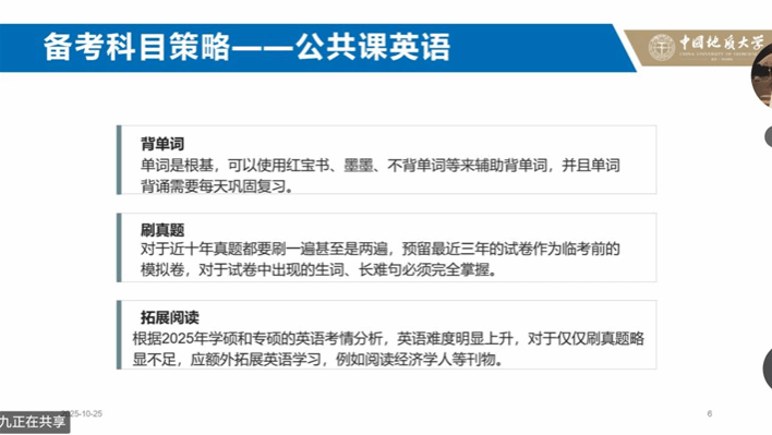 主讲人谌天一本科为广播电视学专业,考研初试专业课 256 分、排名第二,曾获 “优秀毕业生”、米兰设计师大赛湖北省三等奖等荣誉。作为跨专业考生,她分享了新闻传播学备考方法:专业理论可以分阶段进行学习,前期精读、中期抓重点、考前略读;可以按照 “定义 - 原因 - 影响 - 发展” 整理专题笔记,同时补充案例与院校论文;答题建议结合院校风格分类计时练习。公共课方面,英语除刷真题外,可以读一些外文杂志进行拓展;政治多刷肖八、肖四客观题,用背诵手册巩固知识点。