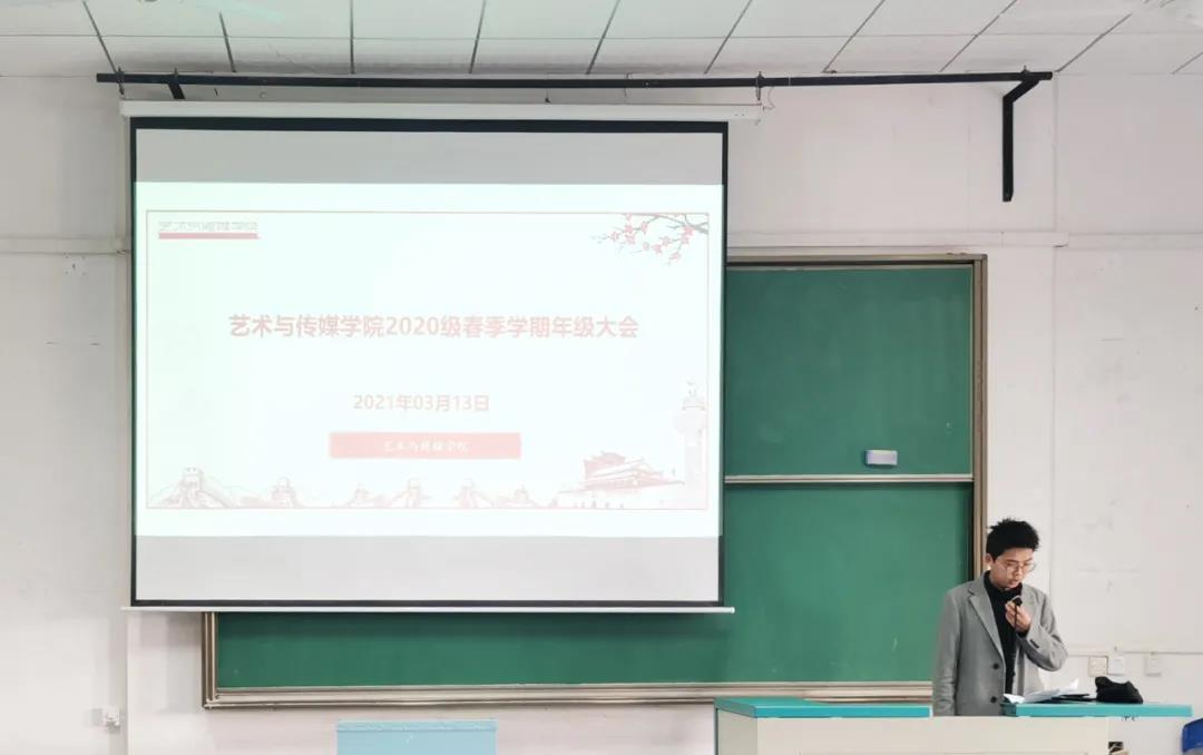 (通讯员 卢宣竹 张璇) 2021年3月13日下午4:00,2020级本科生在教三楼208教室举行了新学期年级大会,会议由辅导员陈习良老师主持,会议旨在总结收尾上学期的工作与梳理下学期的各项安排,2020级本科生参加会议。