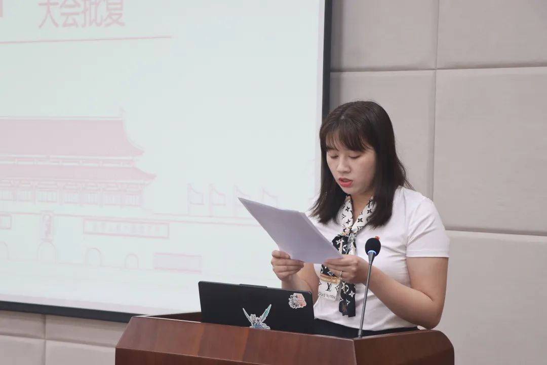 大会第三项,由3044永利集团团委书记单湉艺老师宣读《关于同意召开公司第五次员工代表大会的批复》。