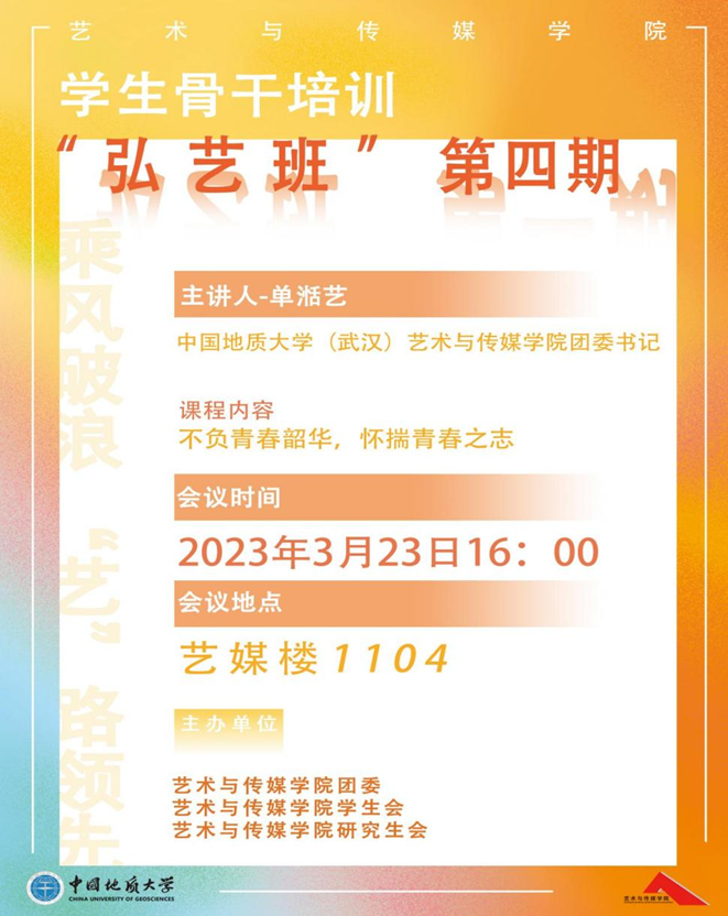 3月23日下午4点,公司第四期“弘艺班”员工骨干培训在艺媒楼1104报告厅顺利展开,公司员工骨干参加了此次培训。本次课程由3044永利集团团委书记单湉艺老师主讲,主题是《不负青春韶华,怀揣青年之志》。