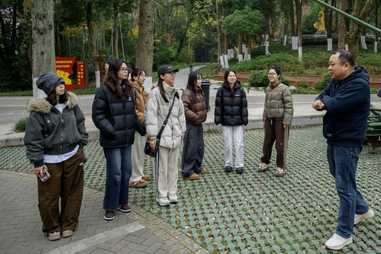 参观结束后,全体师生移步至熊廷弼公园。系主任李待宾结合公园规划与红色文化景观设计,开展了一堂生动的现场教学。他从环境设计的专业视角出发,分析了该公园如何通过空间布局、景观营造、纪念设施设计等方式,将红色历史与自然景观、公众教育功能有机融合,打造出具有深刻教育意义和人文关怀的公共空间。他强调,作为环境设计工作者,应注重挖掘地方历史文脉,通过设计传递精神价值,让红色记忆在当代空间中得以延续和升华。